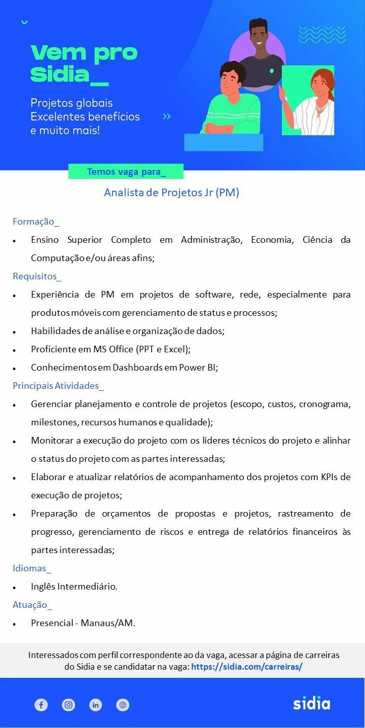Vaga de Analista de Projetos Jr em Manaus/AM
